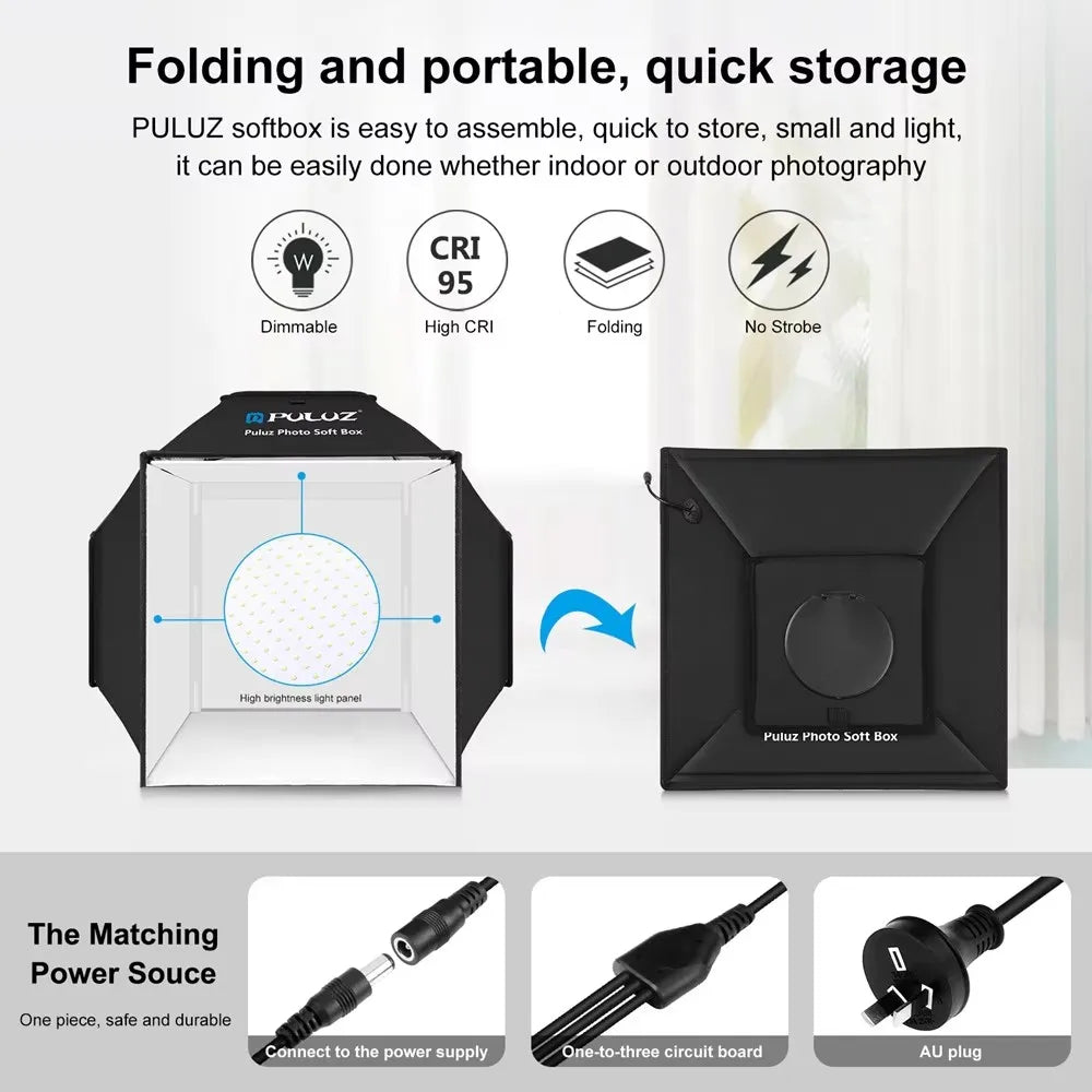 Capture professional-quality product photos from the comfort of your home or studio with this 40cm Folding Photography Light Box Kit. Designed for small to medium product shooting, this portable softbox includes 480 high-brightness LED beads, delivering balanced daylight color temperature at 5500K for sharp, vibrant results.