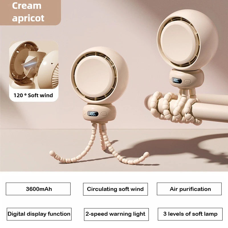 Lightweight and easy to mount using flexible tripod legs, this fan doubles as a desk fan or phone holder, making it the perfect companion at home, in the stroller, or on the go.