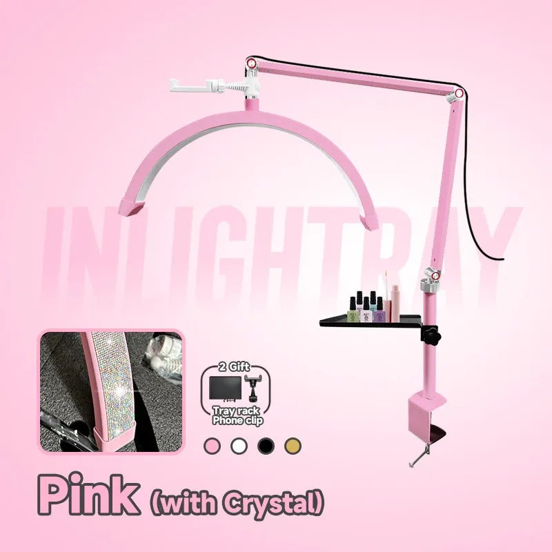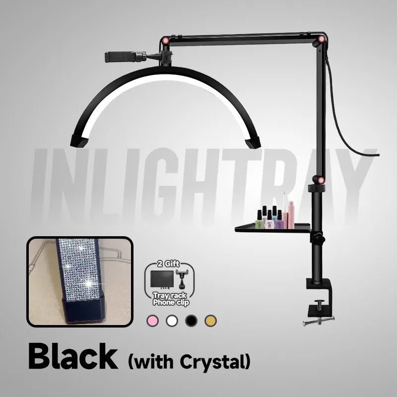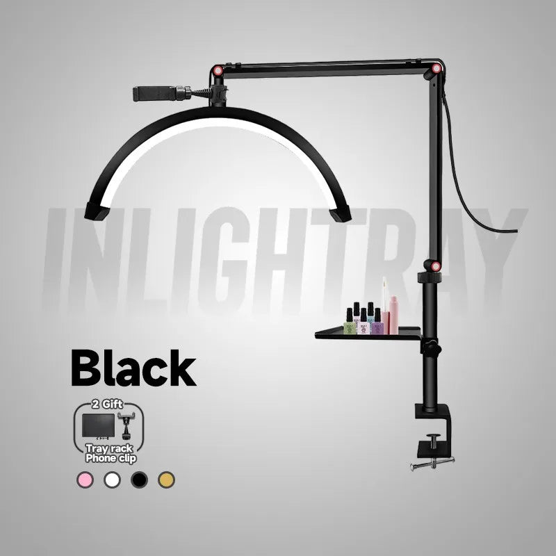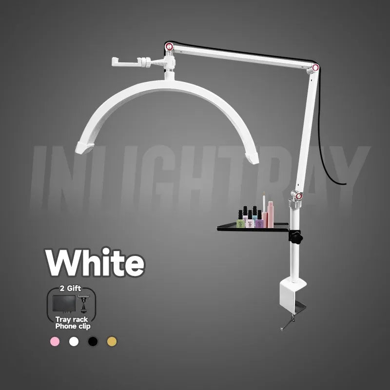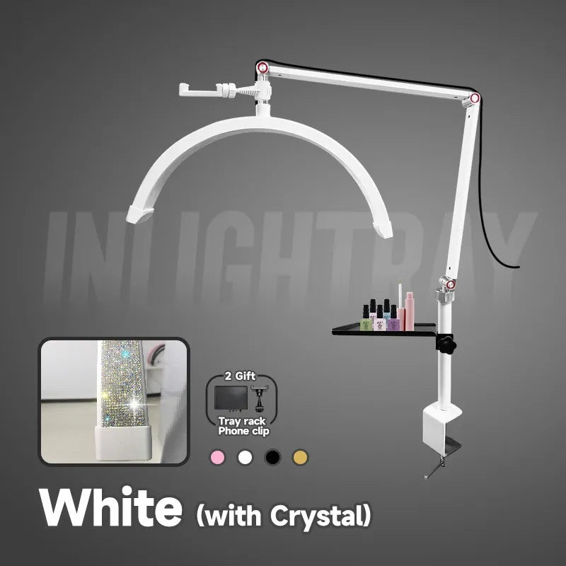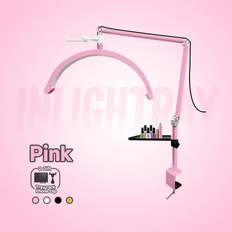 Illuminate your beauty workspace with the INLIGHTRAY Custom Logo LED Lash Lamp, a professional-grade half-moon ring light designed for eyelash extension, nail art, facials, and more. Featuring bi-color temperature control (3200K–5600K) and 10–100% adjustable brightness, this sleek, clamp-on lamp delivers soft, flicker-free lighting for precise work and client comfort.