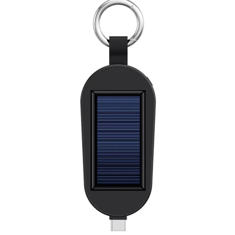 Stay powered up anytime, anywhere with this solar-powered mini keychain power bank. Designed for emergency use, this portable 2-in-1 charger features a built-in USB Type-C plug and solar panel, making it the perfect backup solution for smartphones, smartwatches, and other small devices.