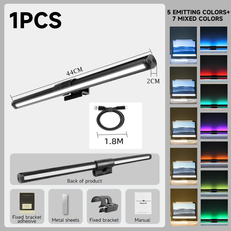 Enhance your workspace lighting with this Stepless Dimmable RGB Monitor Light Bar, designed to attach seamlessly to your computer monitor. Featuring adjustable brightness and vibrant RGB backlighting, it reduces eye strain and improves visibility during long hours of screen time.