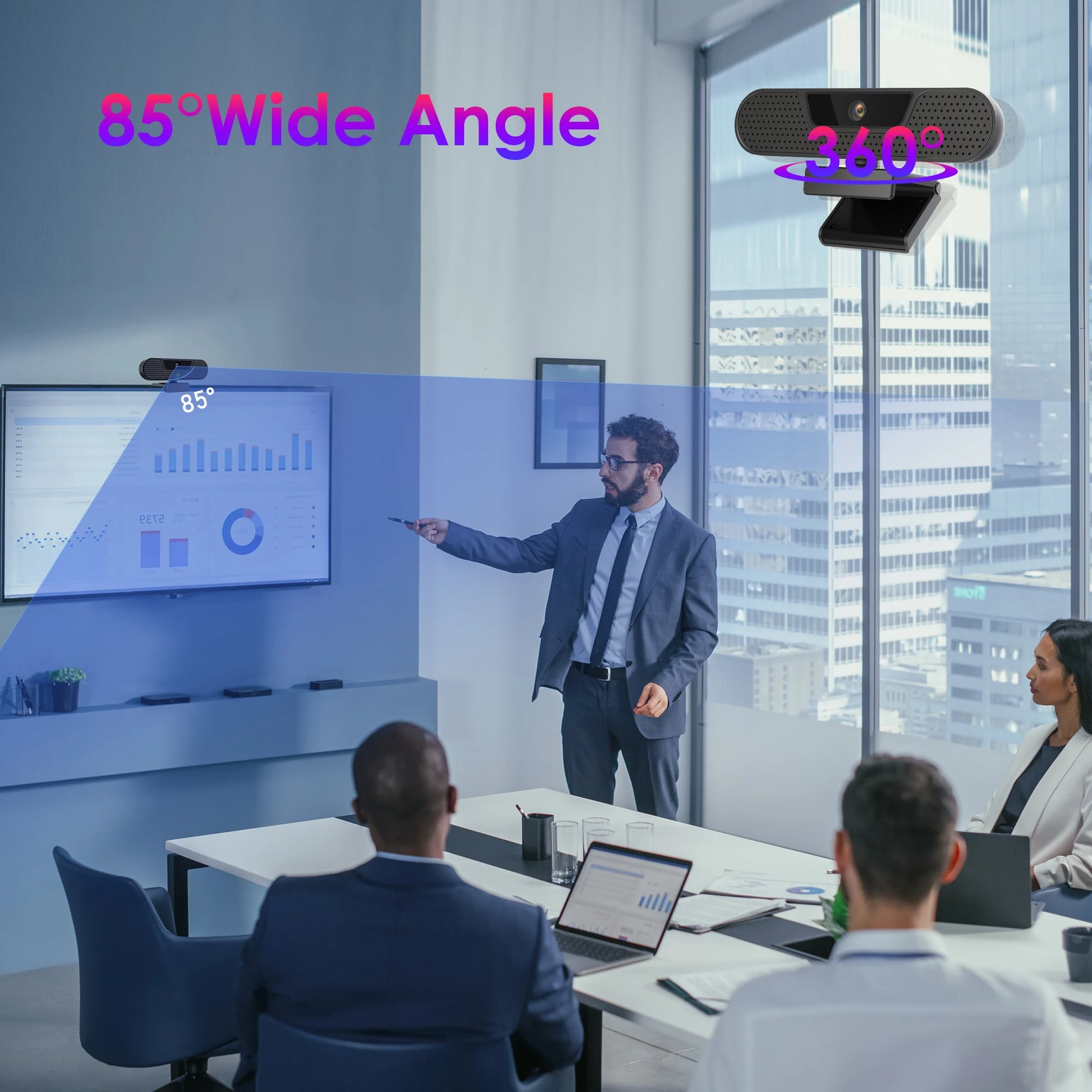 The 85° wide-angle lens captures more of your space without distortion, perfect for online meetings, teaching, gaming, or live streaming. It also includes a privacy cover for added security, a USB interface, and a Type-C converter for universal compatibility. A mini tripod is also included for flexible mounting.