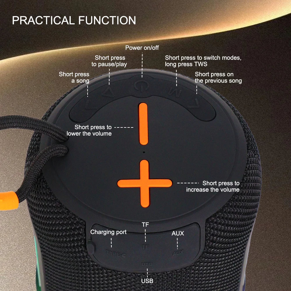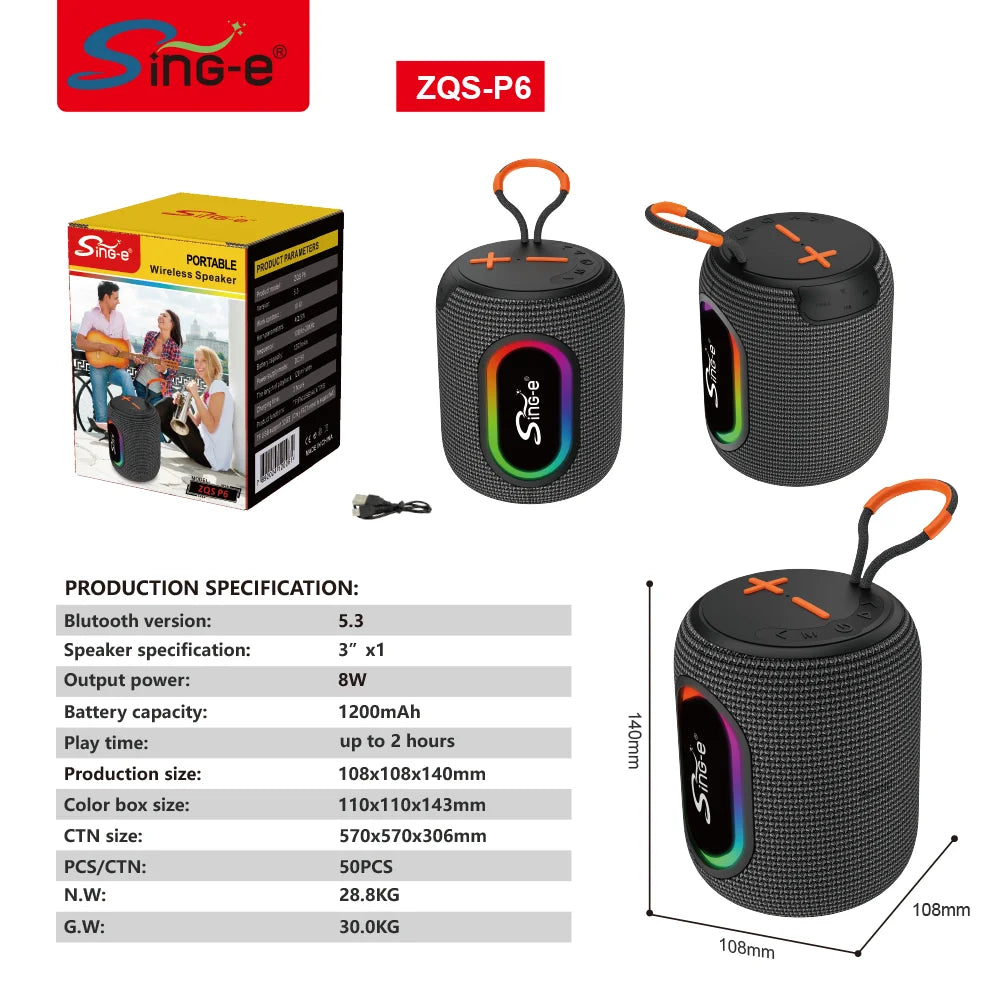 Its rugged waterproof design makes it ideal for outdoor adventures, while the built-in 1000-2000mAh rechargeable battery provides up to 10 hours of playtime on a single charge. The multi-color LED lights add a fun ambiance, perfect for parties or relaxing at home. Compact and lightweight, the ZQS P6 is your go-to speaker for music on the move.
